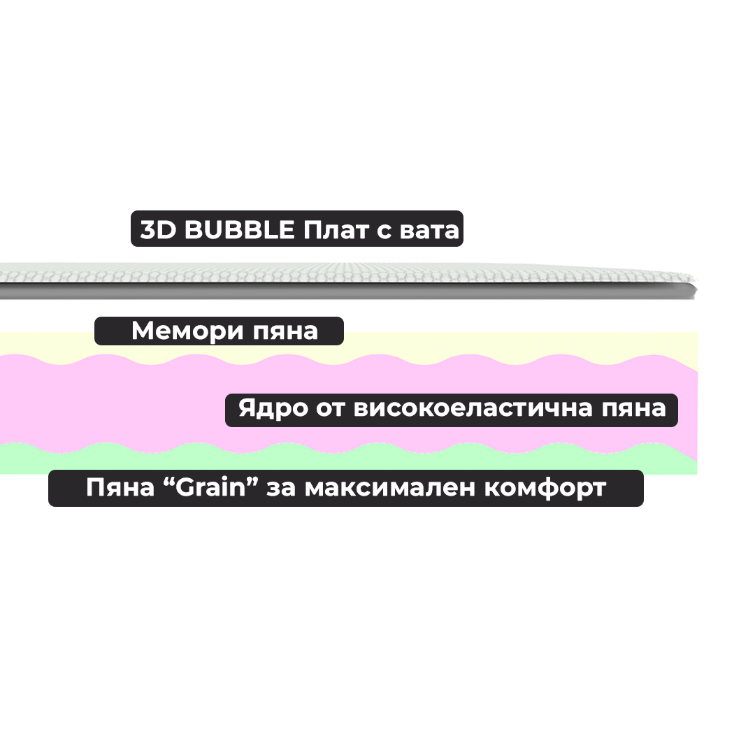 Внимателно подбраните пяни и структури осигуряват правилна позиция на тялото през нощта и усещане за стабилност без твърдост.