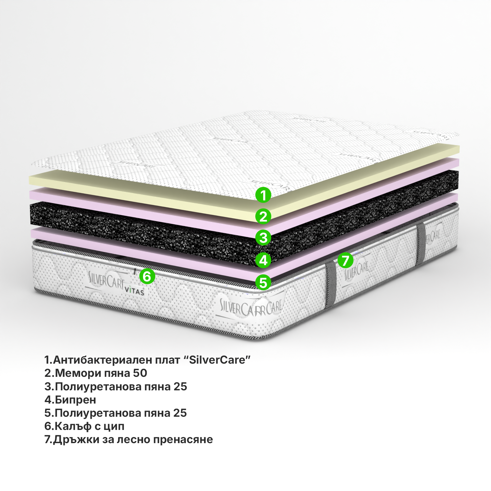 - Антибактериален плат: Грижете се за здравето си с матрак, който предпазва от бактерии и микроорганизми. Подходящ за чувствителна кожа и алергии.